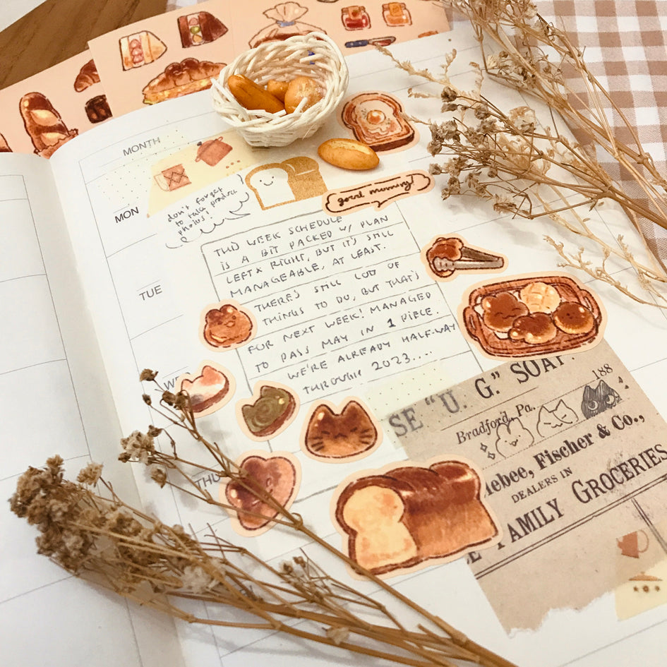 Assorted bakery decostickers to bring delicious bread for your journaling or decoration purpose!