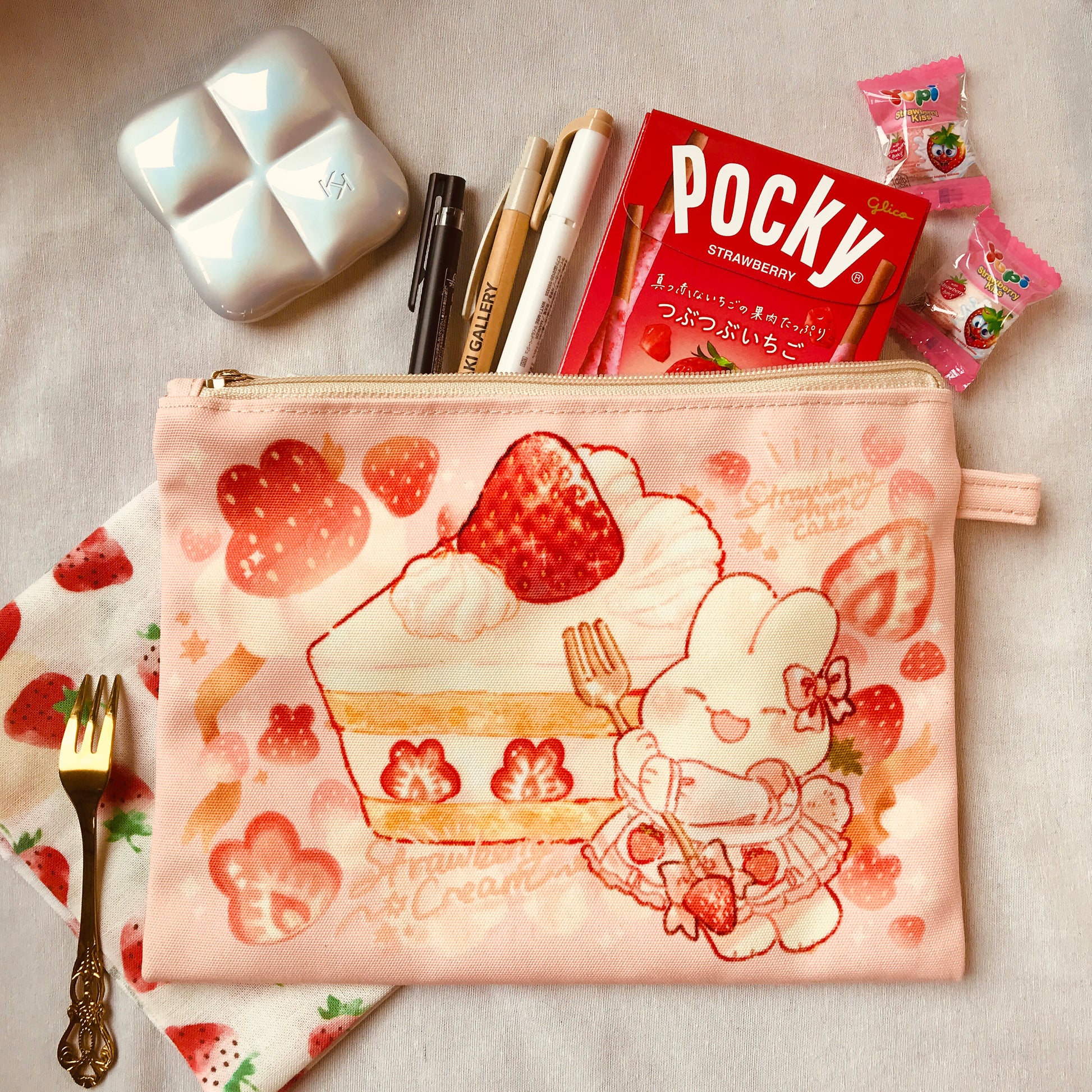 The front side will have Almond with a sliced strawberry shortcake, and the back side will have strawberry pattern on it.